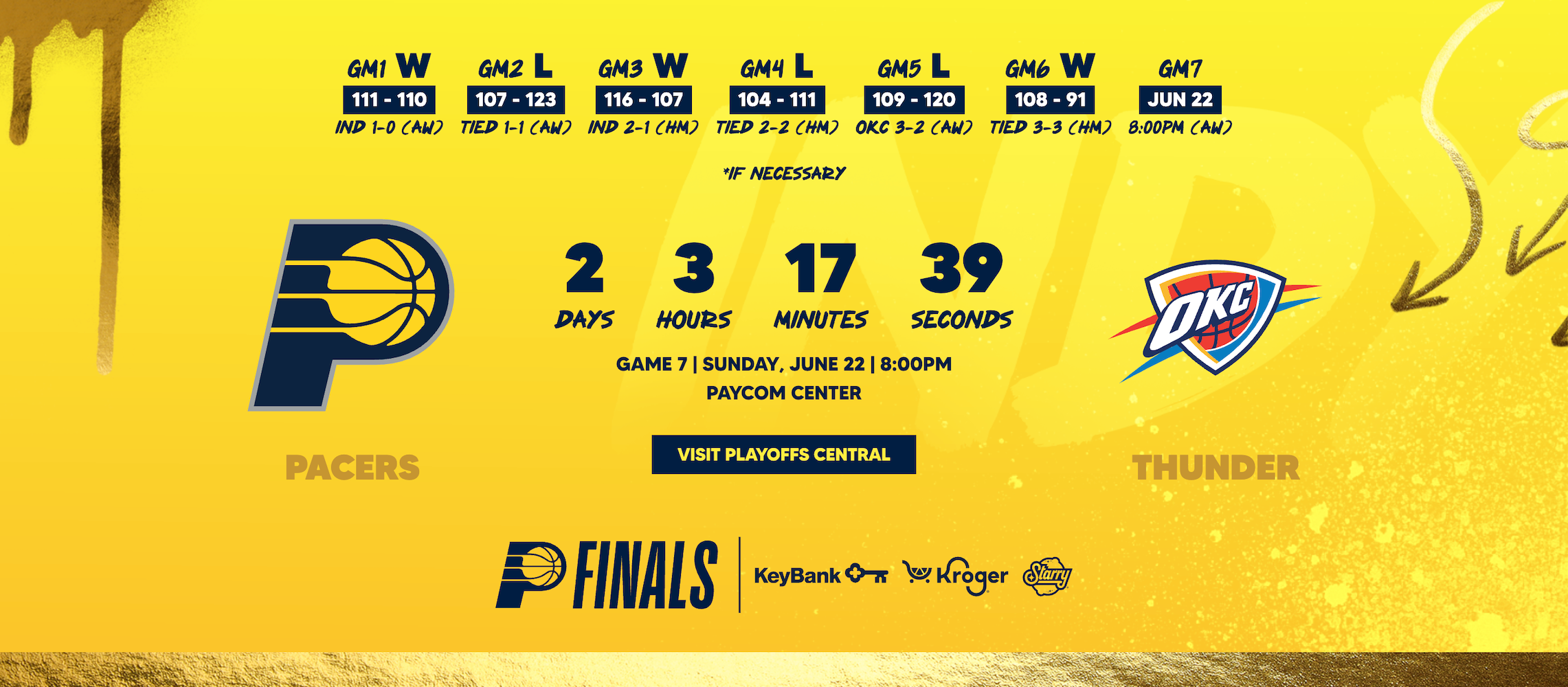 Developed dynamic website homepage block for the Pacers' NBA Finals run that provided important series details all in one place, including game dates/times, scores, a countdown to the next game, and more.